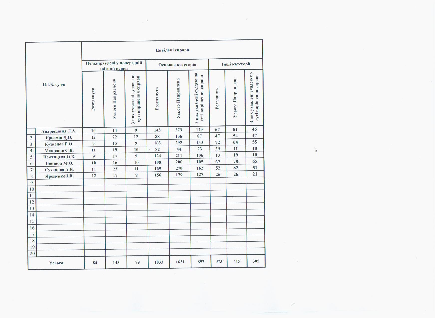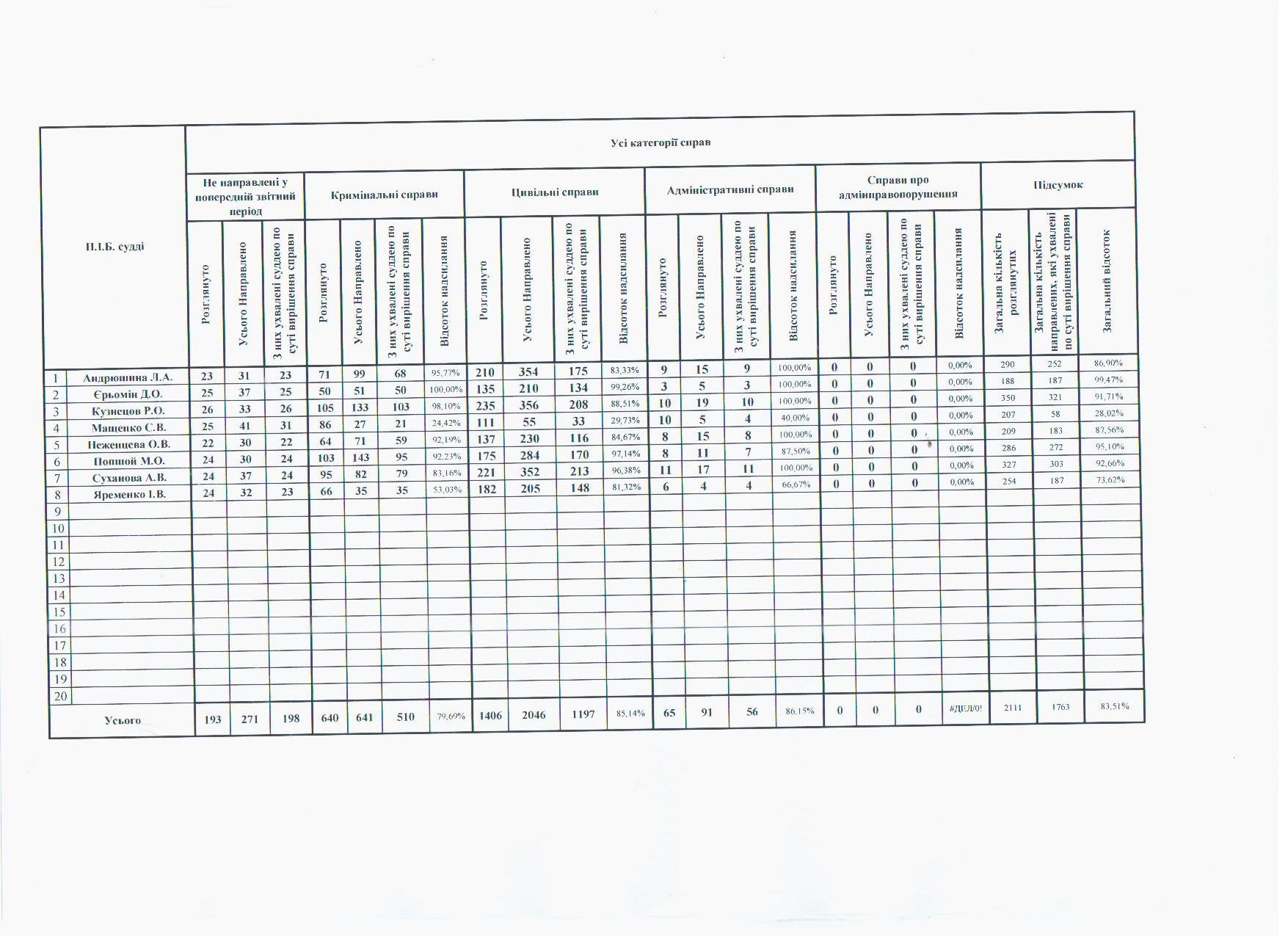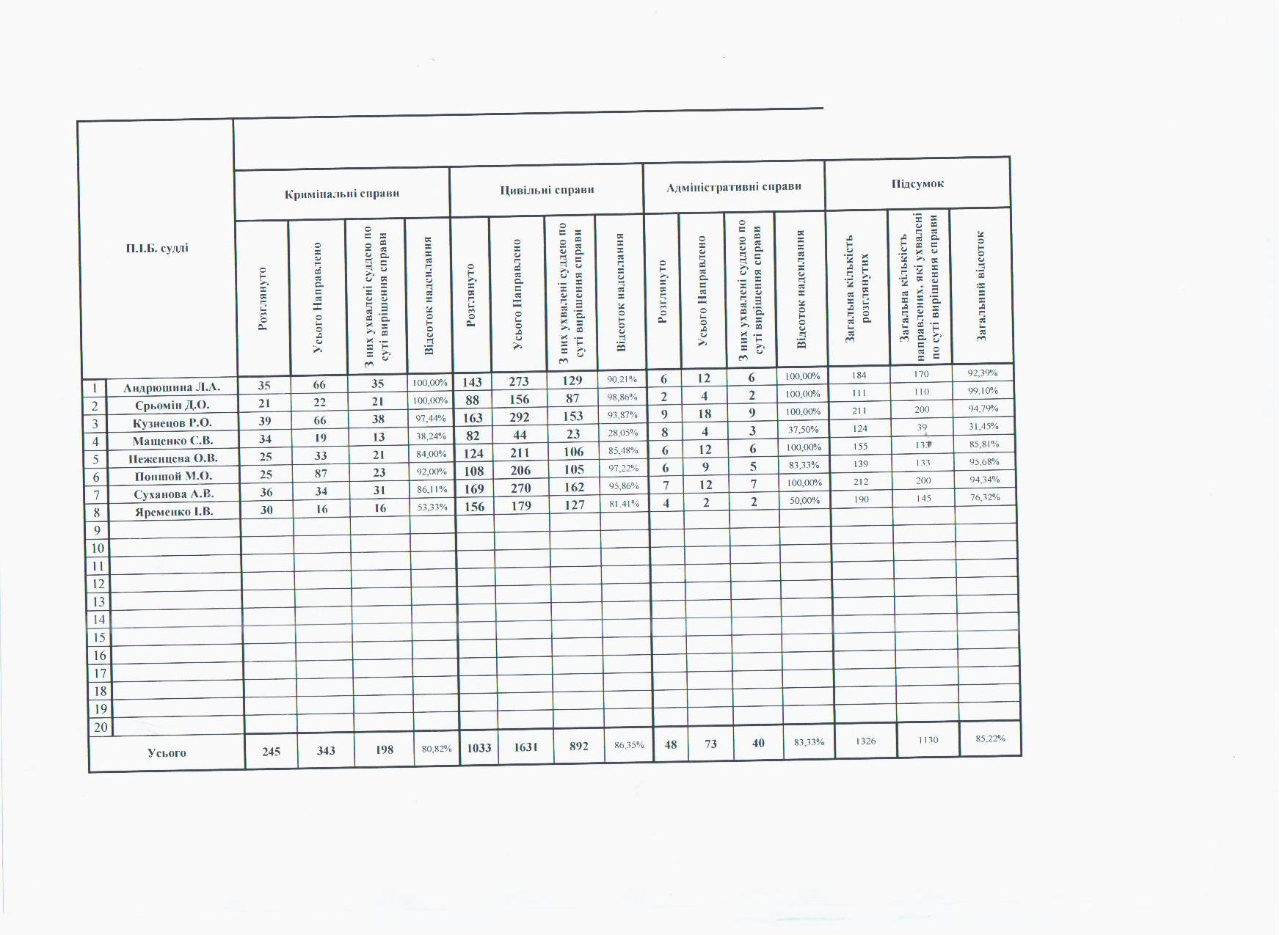 Показники діяльності суду за півріччя та рік