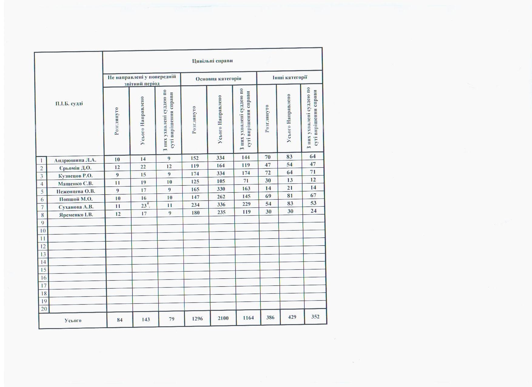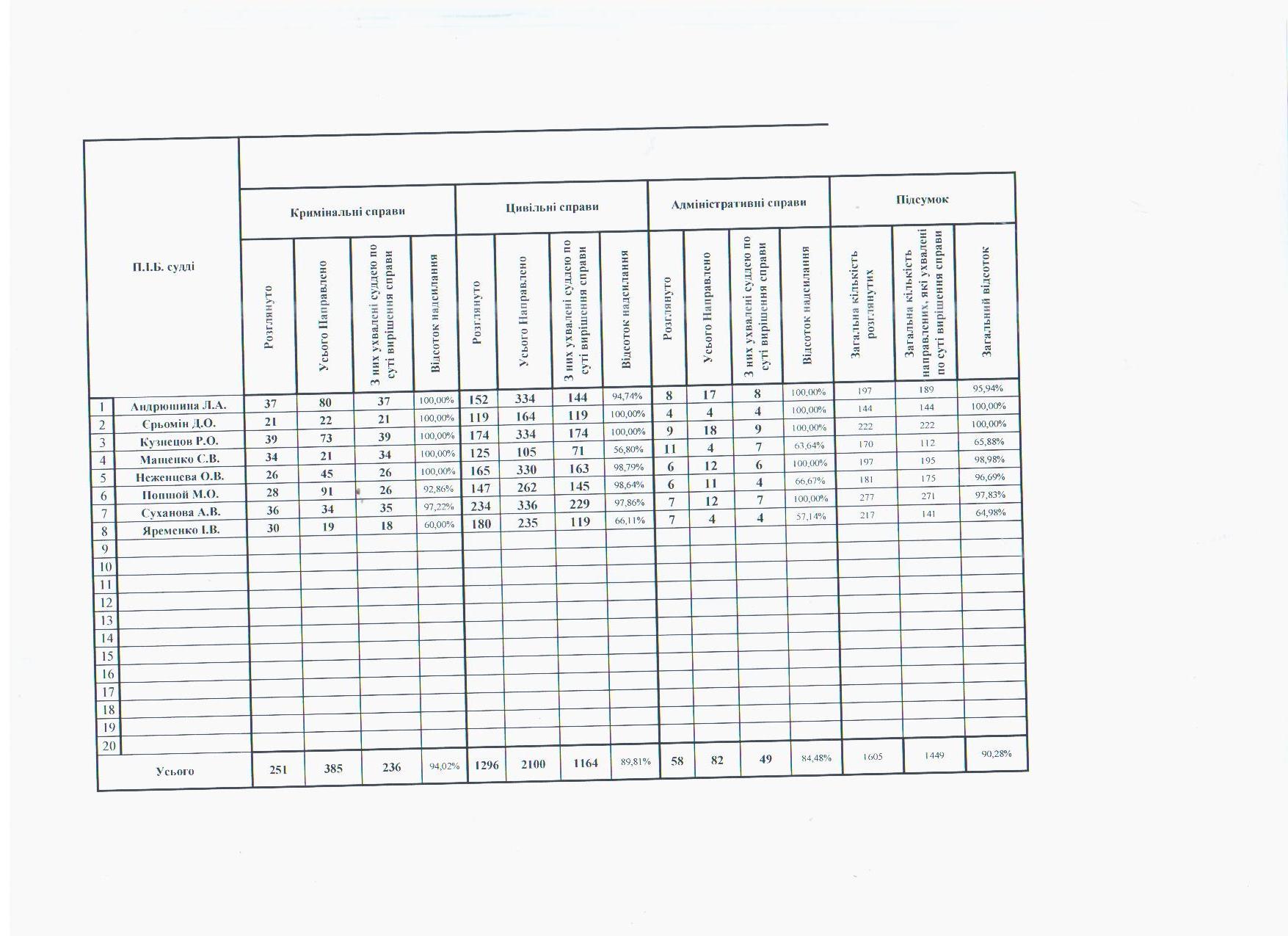 Показники діяльності суду за півріччя та рік