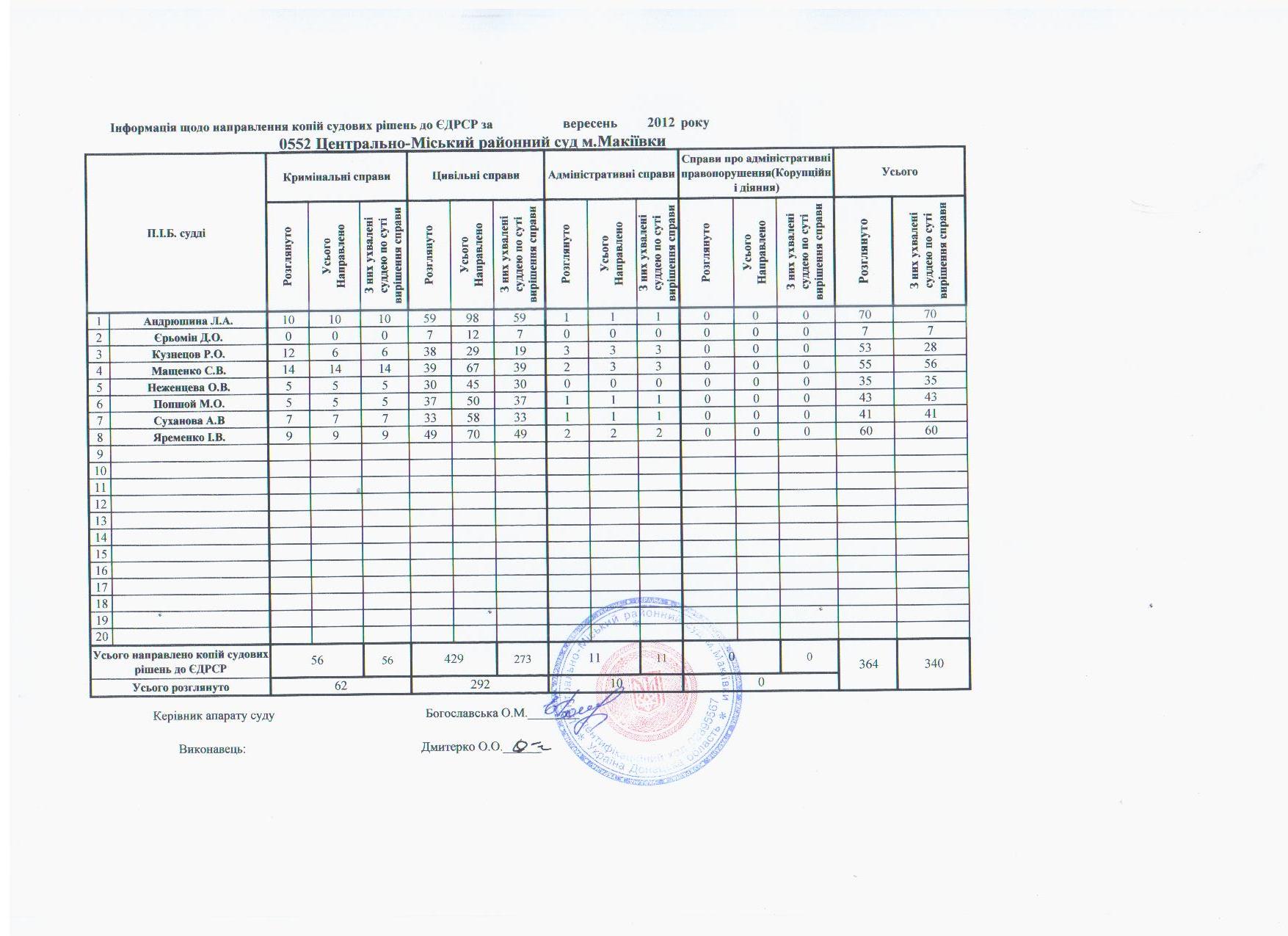 Інформація щодо судових рішень, направлених до ЄДРСР