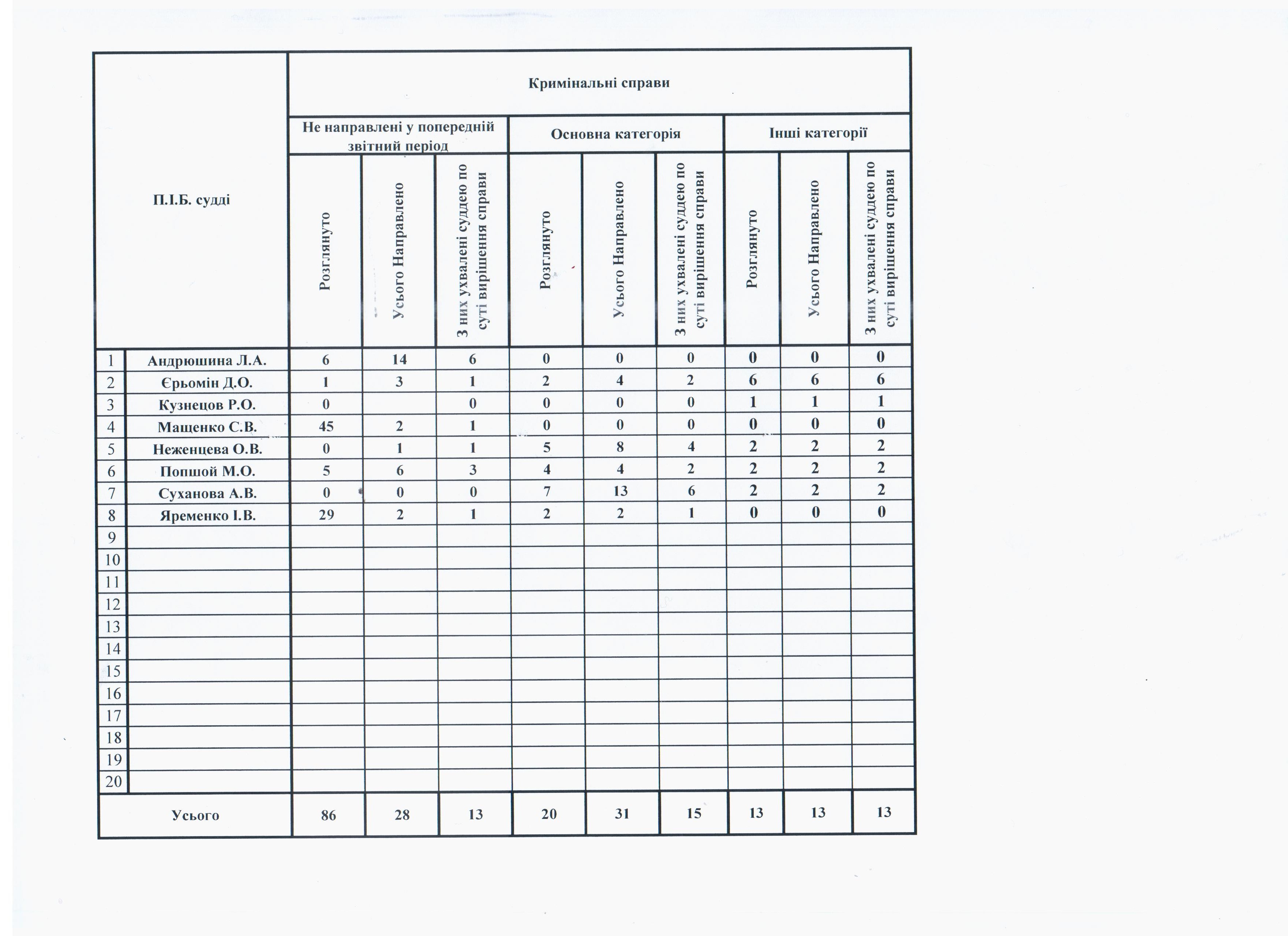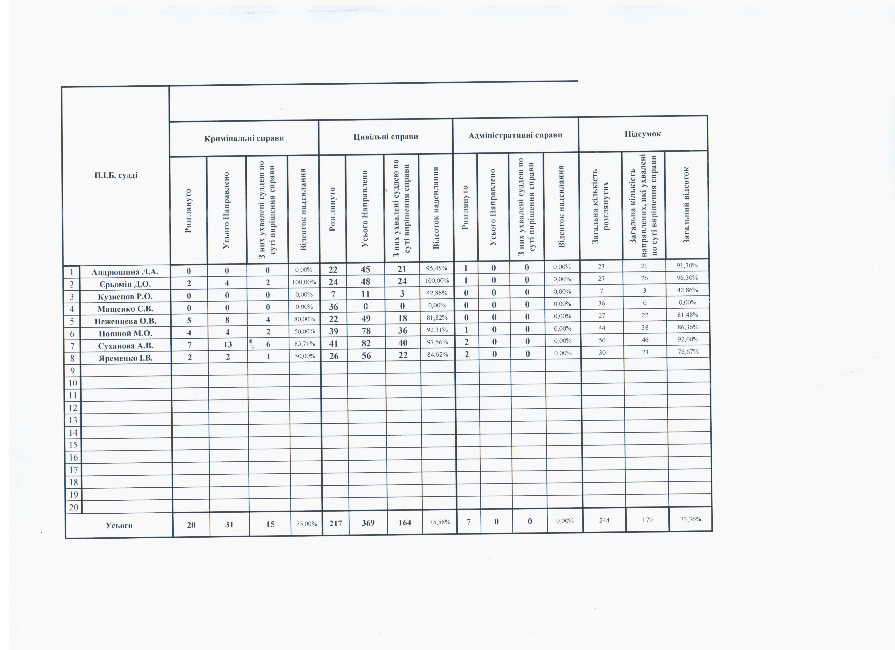Показники діяльності суду за півріччя та рік